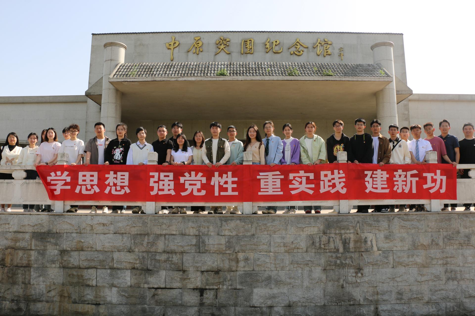 此行最后一站,师生们来到中原突围纪念馆前广场合影留念。