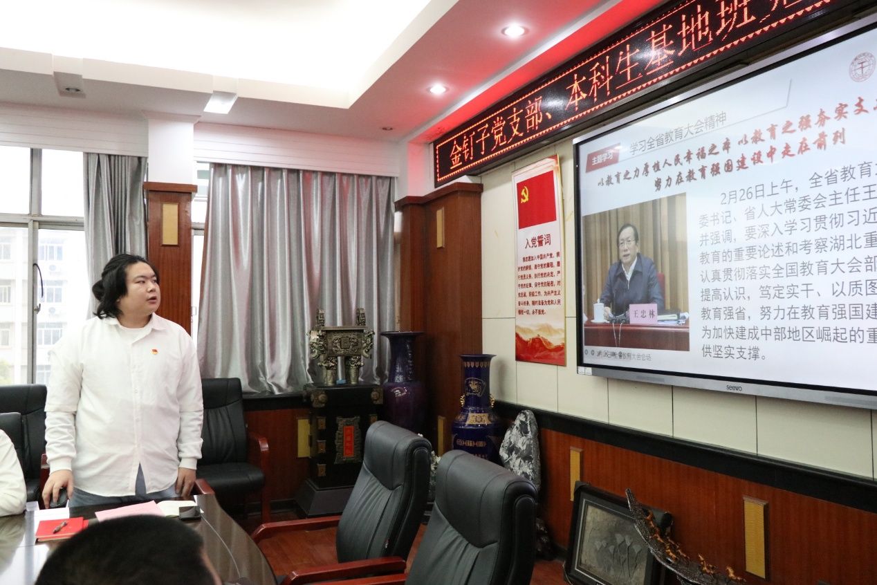 金钉子党支部李冠杰同志带领学习习近平总书记在全国两会期间的重要讲话精神。施翌领学全省教育大会精神,带领党员们学习了2035年建成教育强省的目标和“71020”高校创新体系建设。大家纷纷表示,要牢记时代新人在中国式现代化推进征程中的使命担当,将个人发展与国家需要紧密结合,为全面推进强国建设和民族复兴贡献自己的力量。