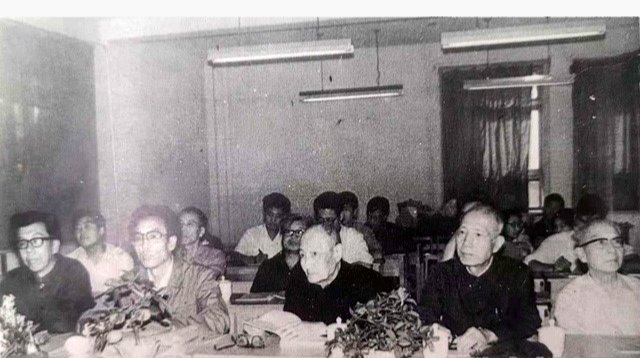 袁复礼90诞辰庆祝会上,黄汲清代表中国地质学会致词后,举杯“祝师长寿敬一盅”