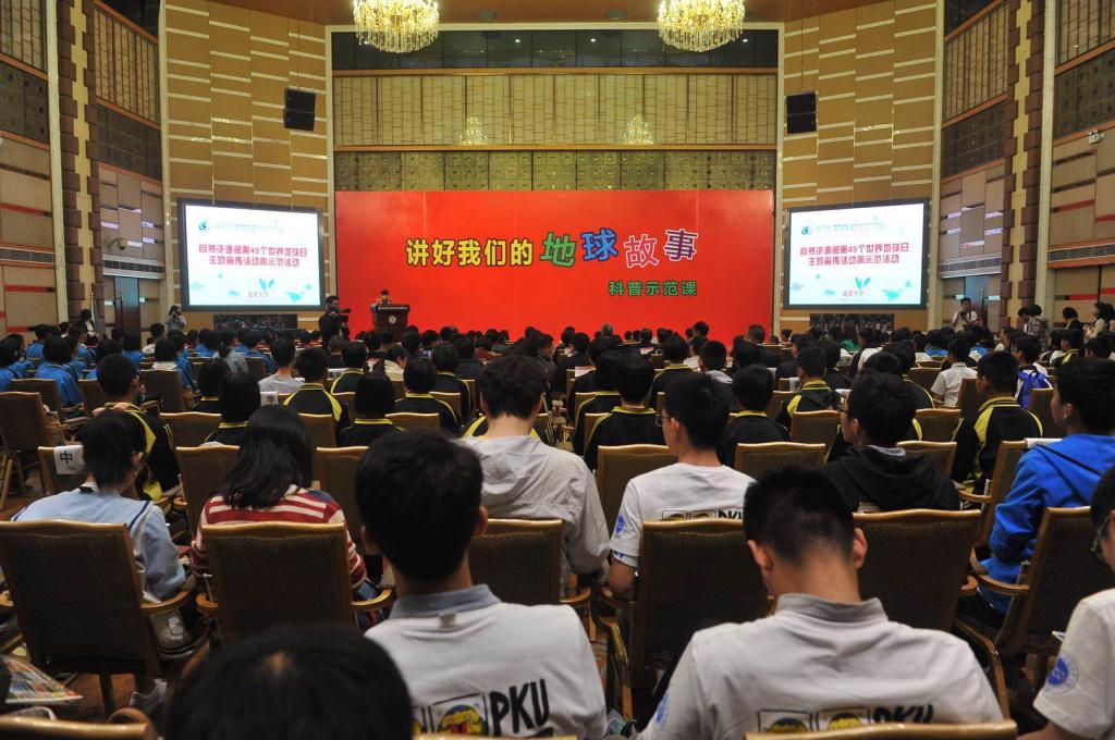 活动中,中国大学生地学科普教育联盟“李四光中队讲师团”团员向现场的中小学生讲授《我们与地球的故事》,启迪现场的中小学生关注地球科学,珍惜自然资源,探索地学奥秘。