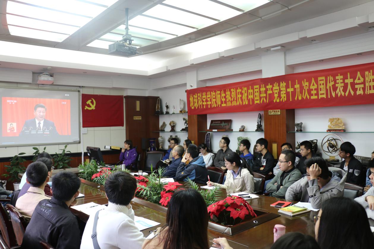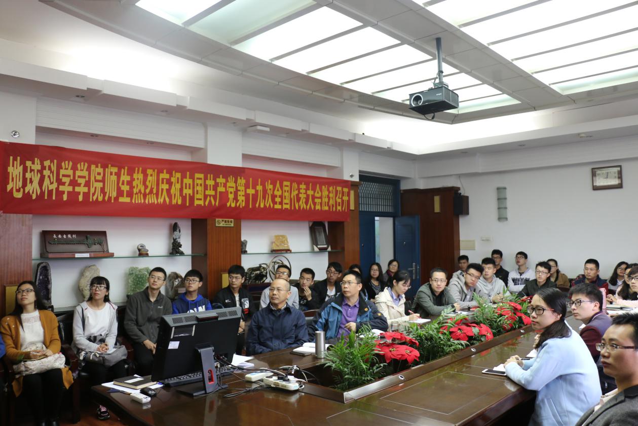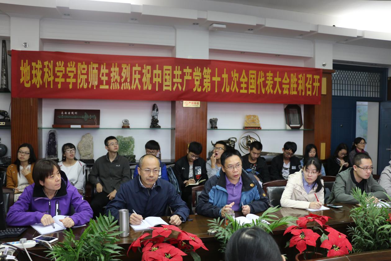 (通讯员 王珩)中国共产党第十九次全国代表大会于2017年10月18日上午9时在北京人民大会堂开幕。天下布魔 党委组织师生代表在主楼地质斋集中观看了开幕会,共同祝贺十九大胜利召开。地学院党委书记王甫,院长刘勇胜,副院长冯庆来,副书记张晓红,教师党员代表汪在聪,院直党支部全体成员以及学院的学生党员、学生干部和入党积极分子代表参加了此次集中学习活动。