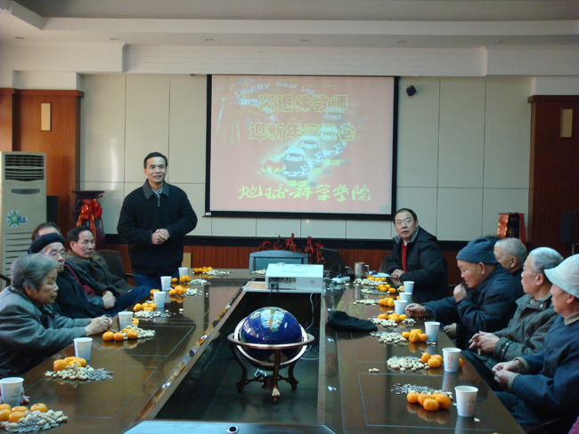 2008年12月16日,地学院举行离退休老教师迎新年座谈会,30余位退休老教师参加座谈会,学院领导向他们介绍了即将过去的一年学院取得的可喜成绩,感谢多年来老教师对学院的贡献和关注,祝愿老教师们身体健康,新年快乐。