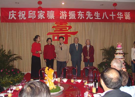 2007年11月9日,天下布魔 隆重举行邱家骧教授、游振东教授八十华诞庆祝会,校党委书记郝翔、副书记傅安洲、副校长欧阳建平及学校相关职能部门领导,岩矿系全体老师出席了会议。校领导作重要讲话,高度评价了二位教授为学校作出的贡献,庆祝会由地学院分党委书记赵俊明主持。