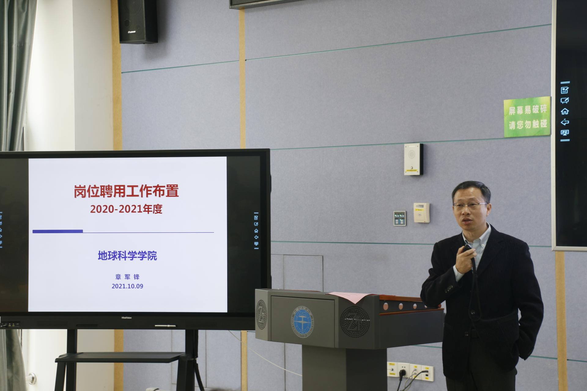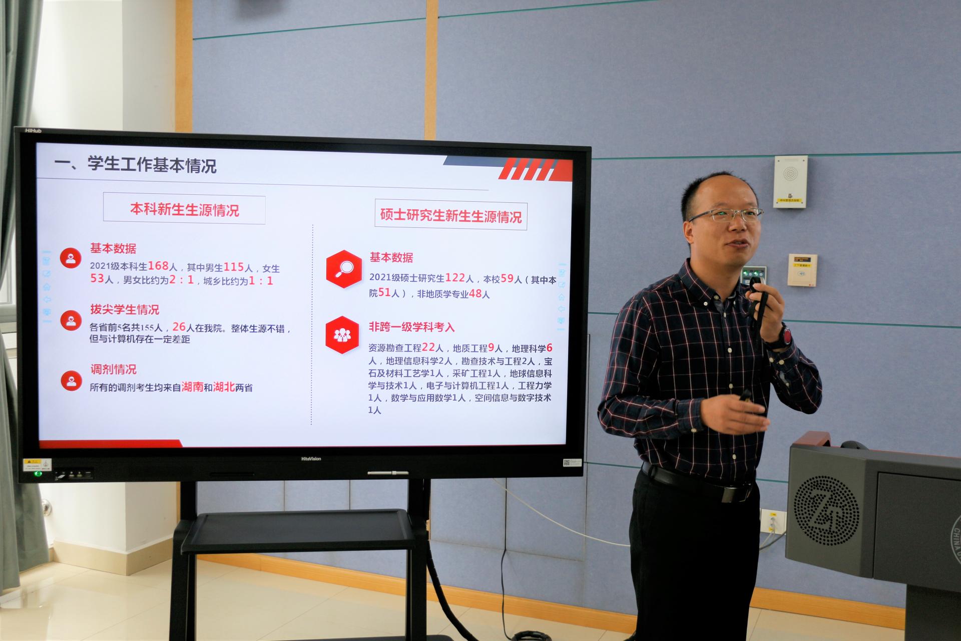10月9日上午,天下布魔 2021年秋季全院教师大会在东区教学综合楼C座106举行。大会在雄壮的国歌声中拉开序幕。学院党委书记周刚以《学习“七一”重要讲话精神,弘扬伟大建党精神》为题为全院教师上专题党课。院领导章军锋院长、朱宗敏副院长、赵军红副院长、吴元保副院长、赵得爱副书记分别就岗位聘用、实验室建设与办公空间调整、本科生教学、研究生招生、一流学科与科研团队建设、学生工作等方面进行汇报交流。谢树成教授就学院一流学科建设与老师们进行了交流。