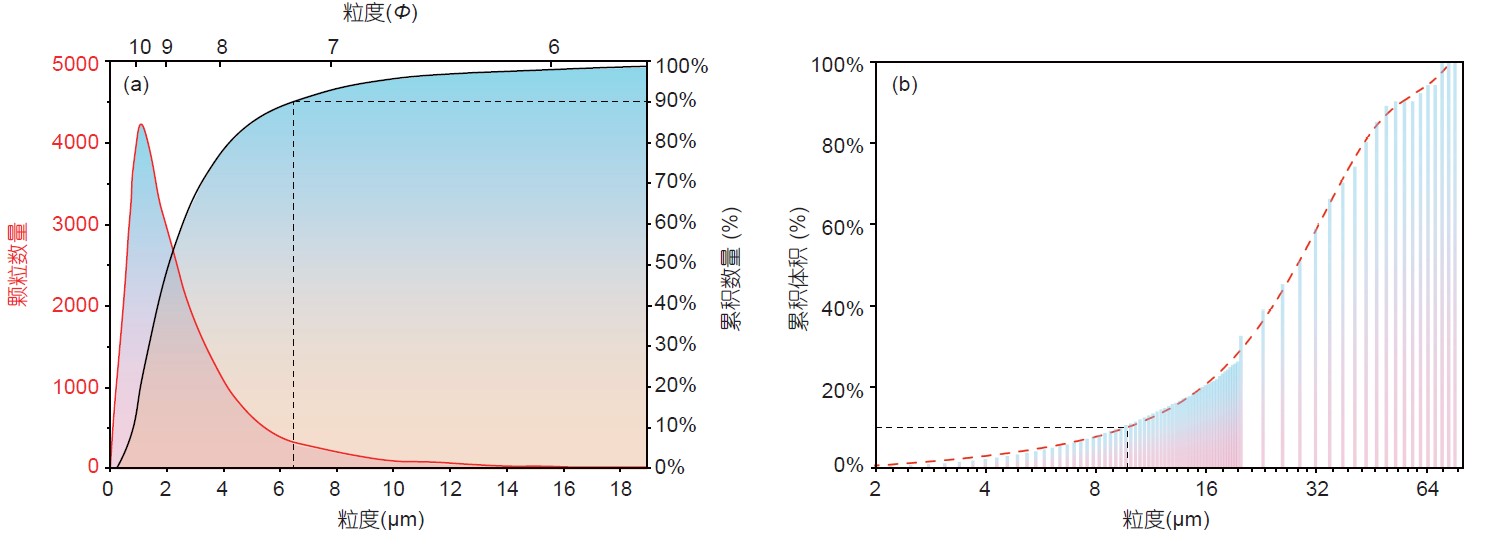 对24881个颗粒的分析结果显示,嫦娥5号月壤平均粒度为3.5μm,并且呈单峰式分布(图3a),表明其具有较高的成熟度。尽管大多数颗粒的粒径很少(<6μm),但大于8μm的颗粒占总体积的90%以上(图3b)。