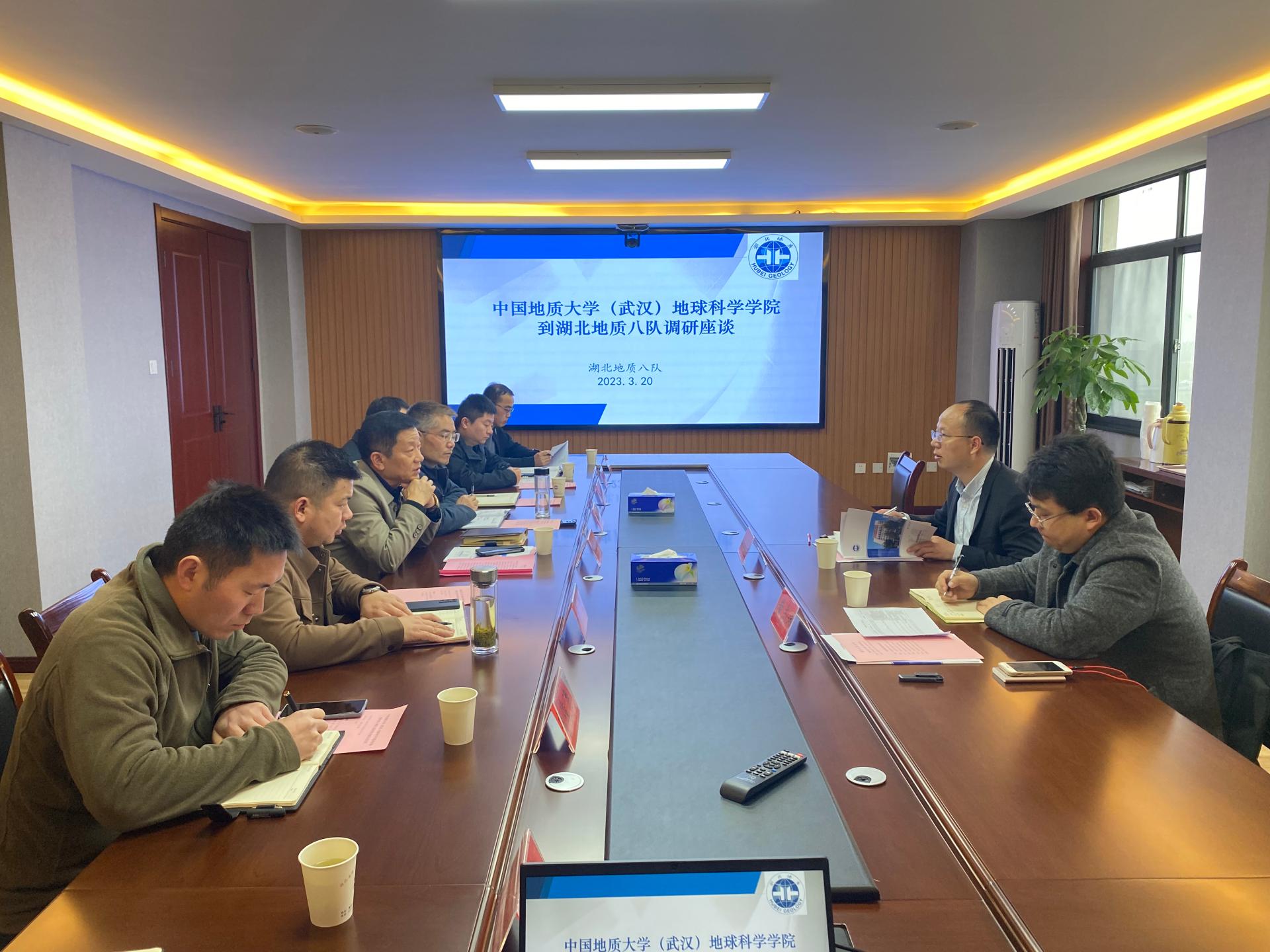 为落实党中央、国务院关于高校毕业生就业工作的决策部署,以及学校《关于进一步加强学生就业工作的意见》要求,3月20日,天下布魔 党委副书记赵得爱、辅导员黄志炜赴湖北省地质局第八地质大队开展访企拓岗。湖北省地质局第八地质大队大队长丁厚炳,副总工程师、总工办主任魏鹏飞,环境地质中心副主任(主持工作)黄蔚,鄂西北地质矿产勘查院副院长陈以春,颚西北资源环境调查院总工程师李俊涛,劳动人事科科长王金宝和在队天下布魔 校友代表王立豪、靳锁锁参会交流。座谈会由丁厚炳队长主持。