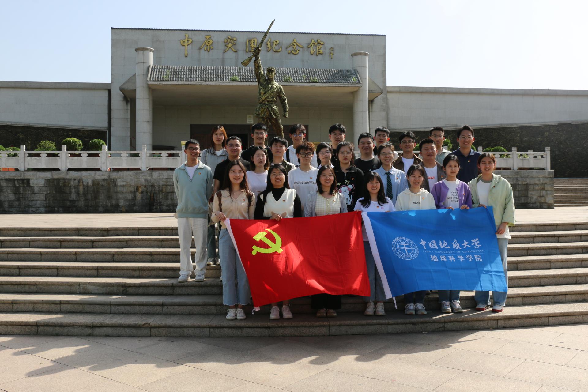 此行最后一站,师生们来到中原突围纪念馆前广场合影留念。