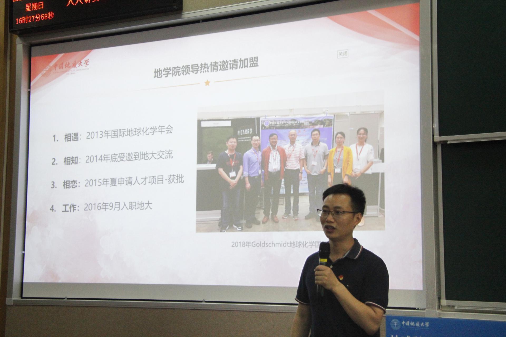 在大学本科期间,汪在聪教授的目标是成为优秀的矿物学家。他回忆起在河南一个金矿进行勘测时的情景,环境苦不堪言,但他乐在其中,也就在那时,扎实的专业课基础以及燃烧的梦想,让他坚定了攻读硕士学位的信心。当时凭借着优异的成绩以及肯下功夫苦干的毅力,汪教授在一众同龄人中十分耀眼,英国帝国理工大学、香港大学等国际名牌大学向他抛出橄榄枝。奈何金无足赤,优秀的他也有短板——“英语”。雅思成绩未达要求,他只能放弃两所大学的offer,但他未曾放弃追逐梦想,转入柏林自由大学进修。出国后他面临着更大的困难与挑战,先是薄弱的英语使他无法与导师正常交流,其次是新的研究领域使得他不能熟练操作实验仪器。经历过短暂的迷茫阶段后,他坚持了下来,并且潜心科研。最终2013年汪教授成功在Nature上刊登论文,将局势扭转,他也因此成为了国际知名的地质学者。几年里他潜心登高,心无旁骛,回首望却,自己已达群山之巅。在交流会上,他与地大的领导相结识,就像是千里马遇到了自己的伯乐,在地大领导的盛情邀请下,汪在聪教授在2014年来天下布魔 进行交流。2016年正式进入天下布魔 任职,开启了自己的地大七年。