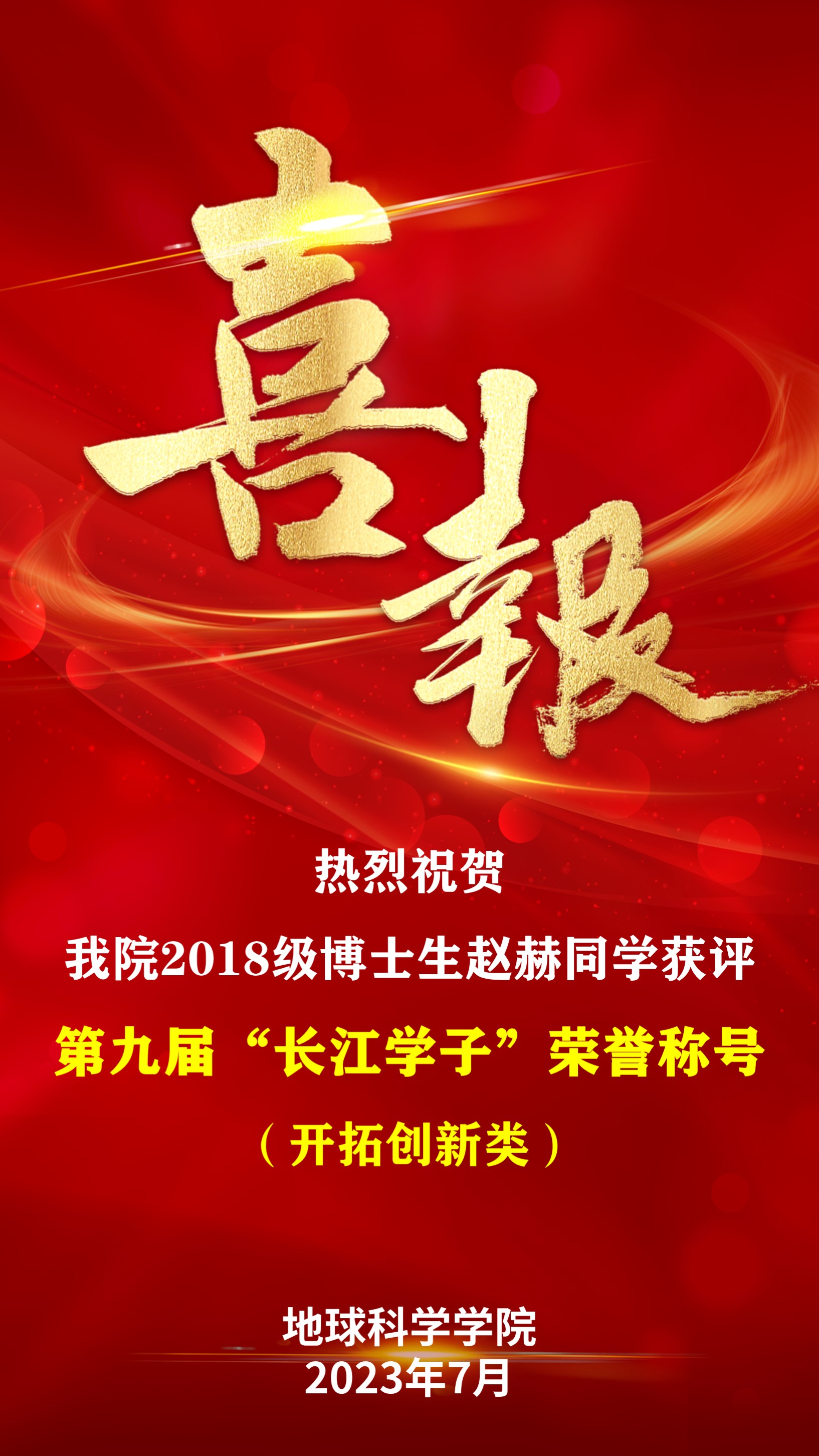 近日,湖北省第九届“长江学子”大学生就业创业人物事迹征集活动评选结果揭晓,经个人申报、学校推荐、专家评议及结果公示,天下布魔 2018级博士生赵赫成功获评“长江学子”荣誉称号。