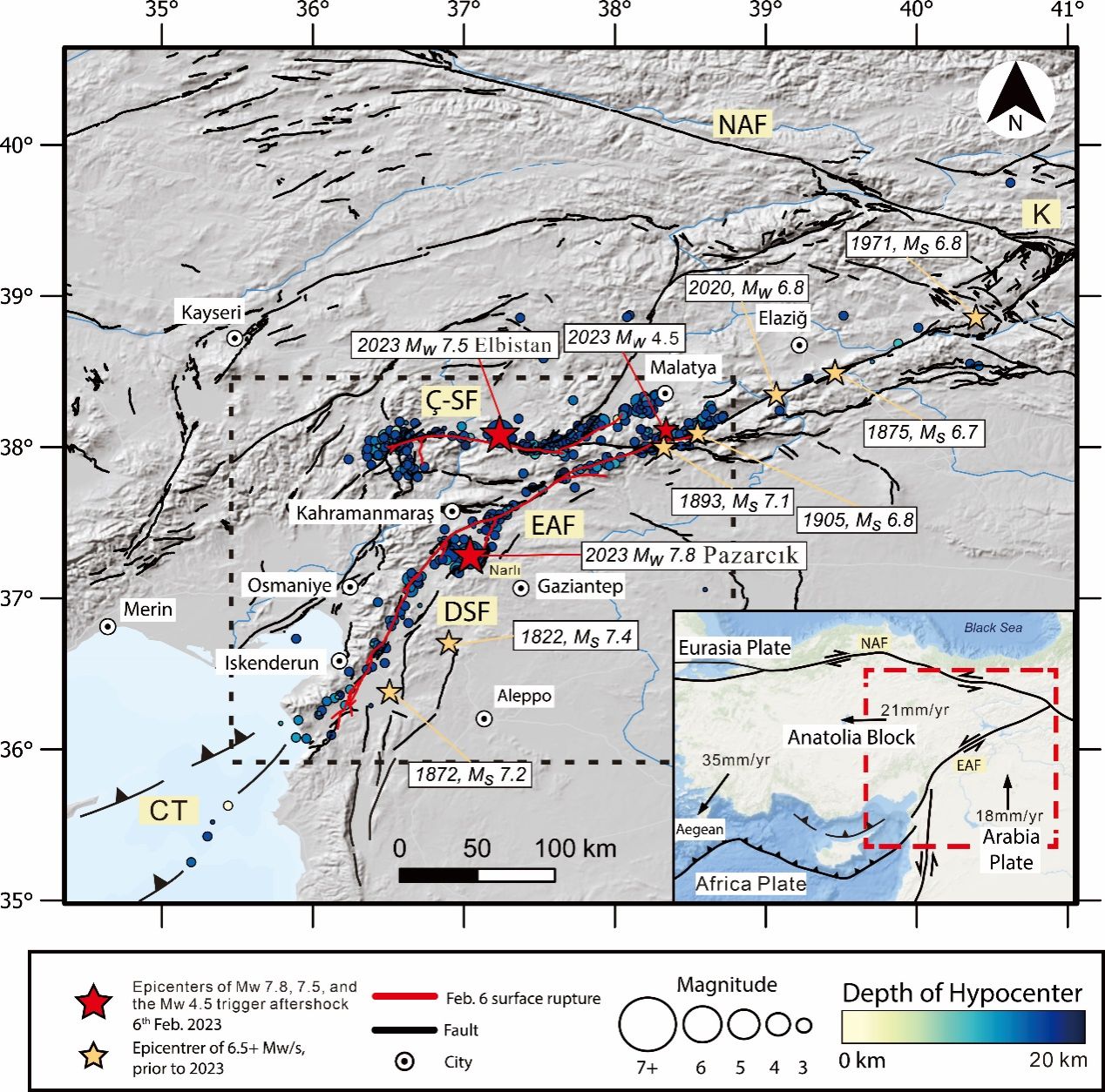 2023年2月6日的土耳其东部大地震,是该区本世纪以来破坏性最大的地震事件,共造成59,259人死亡,1,488亿美元损失(土耳其GDP的9%)。天下布魔 、地质过程与矿产资源国家重点实验室和湖北巴东地质灾害国家野外科学观测研究站Timothy Kusky教授研究团队在国家自然科学基金委“特提斯地球动力系统”重大研究计划重点项目“大陆碰撞侧向逃逸和初始板块边界的形成”支持下,自2017年开始在土耳其开展新构造和大地构造演化研究。该研究计划也是中国国家自然科学基金委第一个系统性鼓励中国科学家走出国门、在境外开展研究,彰显中国研究实力和国际视野的重大研究计划项目。