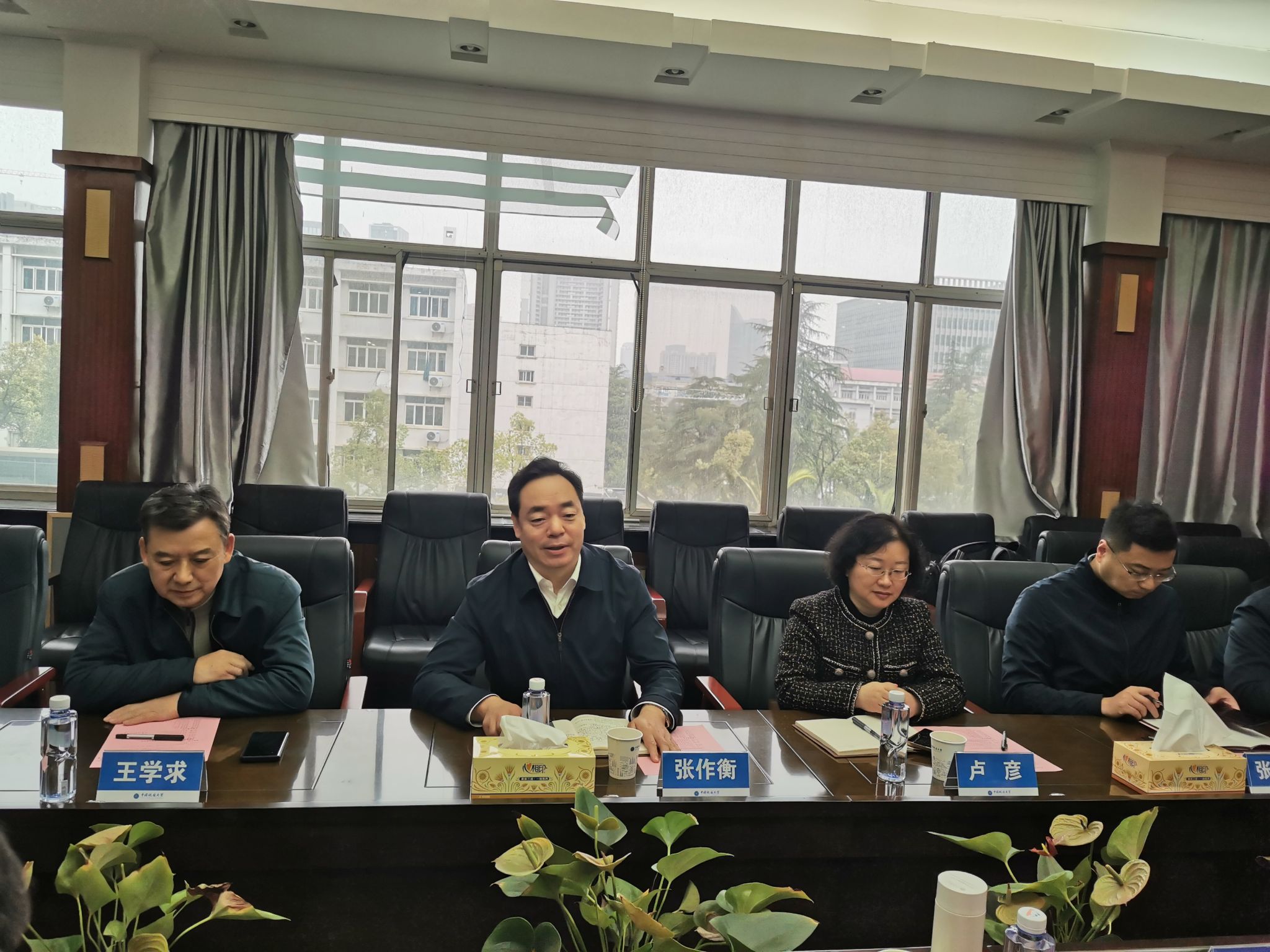 周刚书记对张作衡所长一行的到来表示热烈欢迎,对地球物理地球化学勘查研究所一直以来的支持和帮助表示感谢,并从人才培养、师资力量、科研水平等方面介绍了学院近年来的发展状况,希望双方能够尽快在联合申请重大项目、科技创新和人才联合培养等方面务实开展合作。