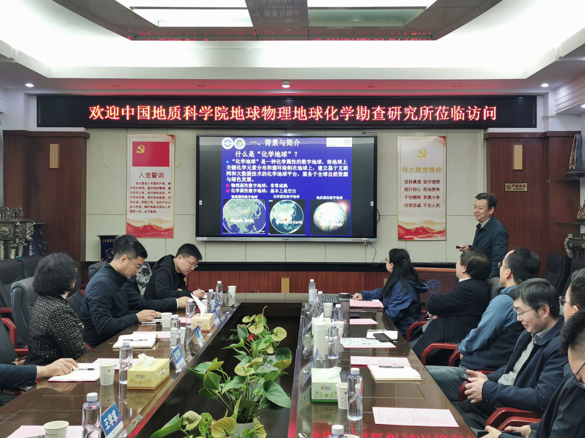 地球化学系党支部书记谢淑云详细介绍了地球化学专业、师资力量和专业人才培养情况,该系在覆盖区找矿、分析测试等领域已与物化探所建立了良好的合作关系,后期将与物化探所共同推进学生联合培养、重大科学问题、高精尖技术方法研究等事宜。