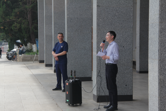 演练结束后,学院党委书记周刚在主楼前发表讲话,强调了实验室安全、宿舍安全的重要性,并再次提醒大家必须时刻保持高度的消防安全意识。消防科科长刘从贵指出本次演练的不足之处,提醒全体师生提高自我防护能力。