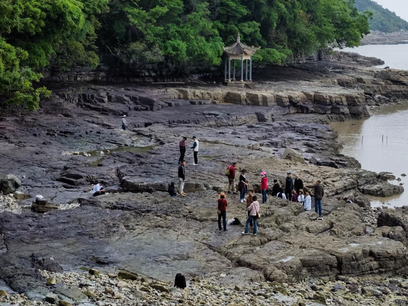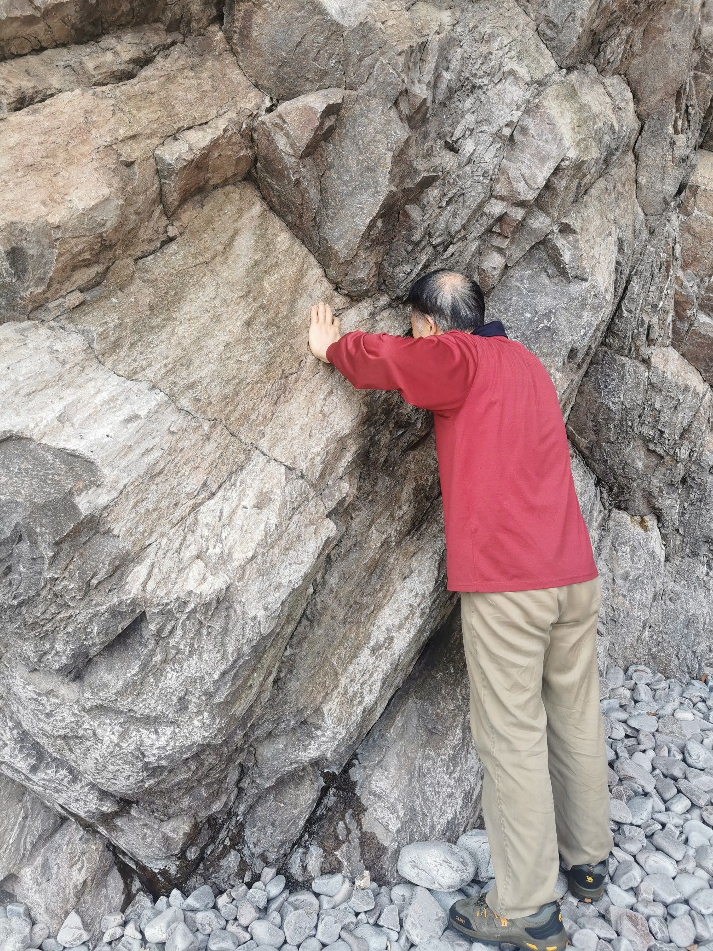 4月20日下午,老师们观察了石浦灰岩地层剖面,该剖面是地质学界长期探索的科研迷地,海相灰岩产出的独特地质环境,为深入了解海陆过渡相扇三角洲和潮坪—泻湖亚相的形成机制提供了绝佳场所。碎屑岩夹层中保存的含叠层石等礁灰岩层,更是对古生物学有着重要探索价值。