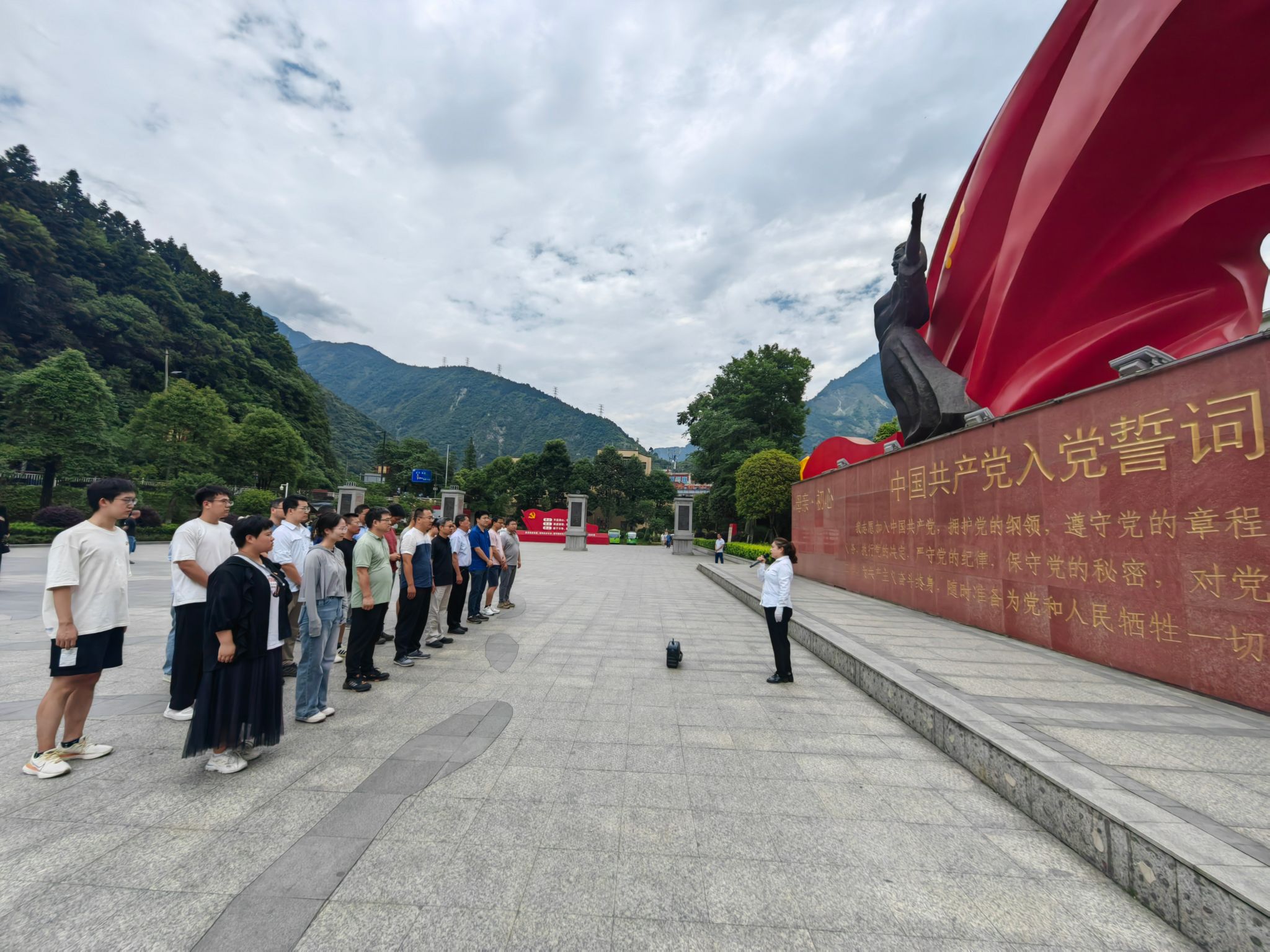 最后,全体党员同志来到家国情怀·宣誓广场,肃立在“初心·母亲”主题雕塑前,接受了一次生动的党史党纪和爱国主义教育,并在支部书记的带领下,重温入党誓词。