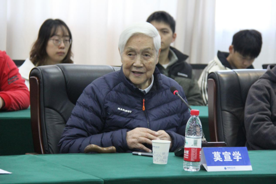 在本次以“立志与成才”为主题的交流座谈中,莫宣学院士首先以自己的学习经历和恩师池际尚先生的事迹为引,深刻阐述了“立何志”的问题。他强调,青年学子应将祖国和人民的需要置于首位,将个人理想与国家发展紧密结合,方能实现个人价值。随后,莫院士就“如何锻炼自己”的问题给出了指导,他提出,要成为国家和社会的栋梁之才,必须在长期的艰苦实践中打下坚实的基础,练就过硬的基本功,重视野外工作和细心观察,从而在平凡的事实中发现新思想、新理论的萌芽。同时,他鼓励同学们拓宽知识视野,善于学习,用古今中外的知识丰富自己,以拓展创造性思维和提出创新理论。