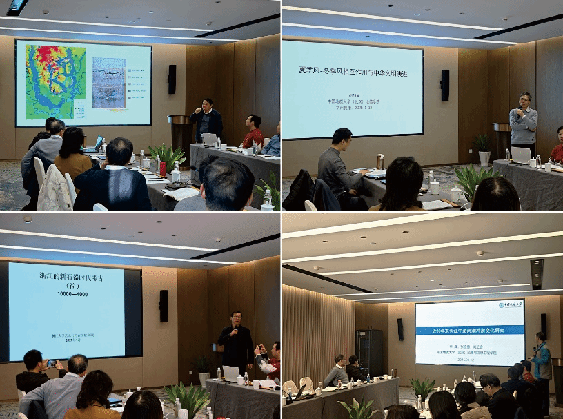 在对古代文明演进展开热烈讨论的同时,流域自然环境的研讨也精彩纷呈。天下布魔 (武汉)胡超涌教授着重交流了流域的过去气候变化,从气候学视角出发,分析了季风气候演变对中华文明发展的深远影响。他特别提到新仙女木事件对农业起源的可能促进作用,以及气候波动如何影响新石器晚期的文明兴衰。天下布魔 (武汉)李辉老师汇报了过去30年长江中游河湖冲淤变化及其对生态系统的影响,指出在重大工程影响下流域湿地面积缩减、洪水风险增高等问题,并建议通过加强监测、优化水资源调度,提升生态修复工程,以应对这些挑战。