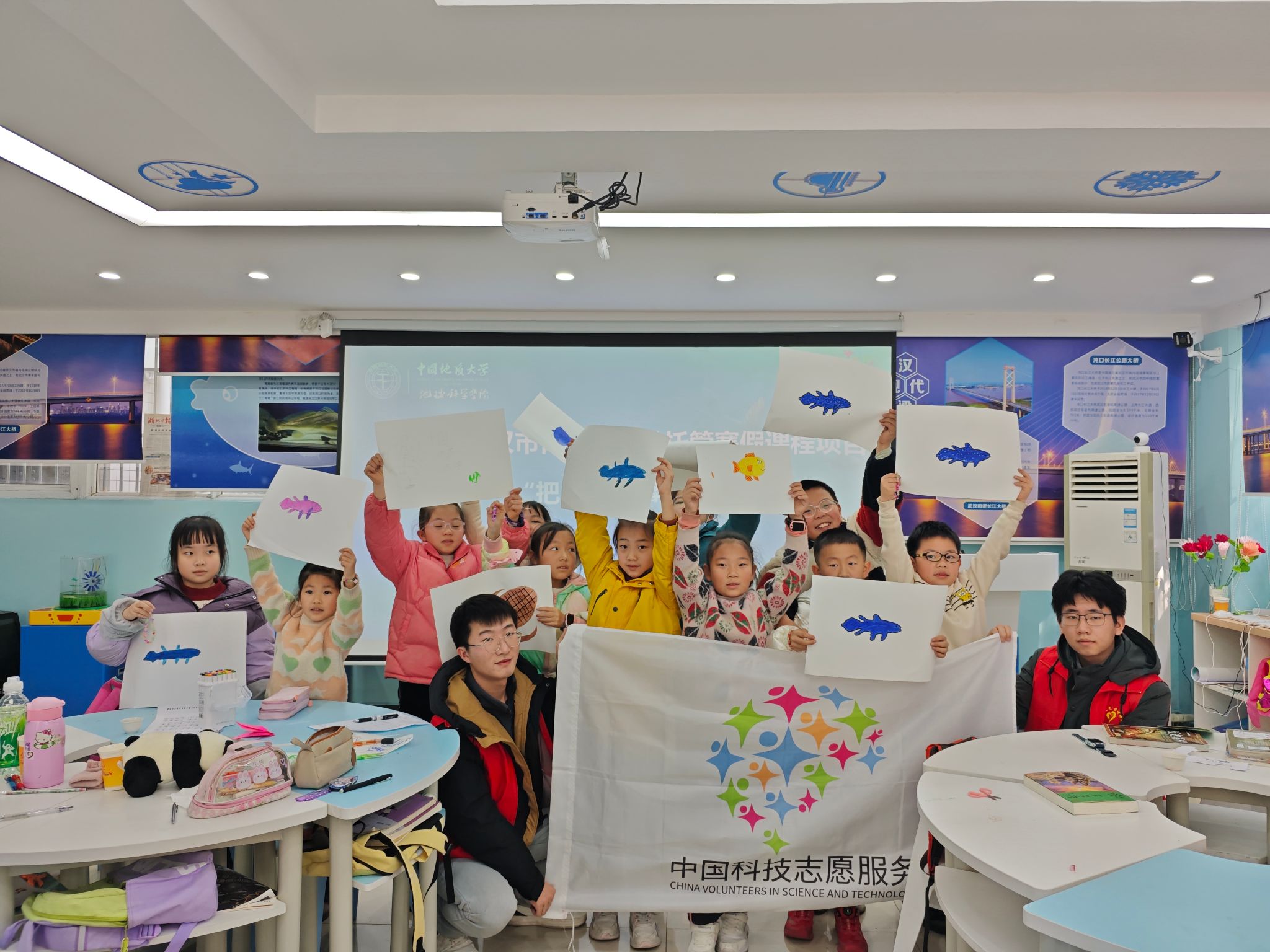 “爱心托管班”是湖北省的“十大民生项目”之一,旨在服务留守儿童、经济困难家庭儿童以及“双职工”子女,提供公益性寒假看护,为各地群众有效解决假期“看护难”问题。2025年寒假期间,在武汉市团市委发起的“青少年寒假爱心托管班项目”中,天下布魔 “地学之光”科普讲解队承担的“把地球故事讲给你听”爱心托管项目顺利入选首批10个I类课程,于1月14日-21日期间,深入武汉市190个社区托管班开展科普志愿活动,为6000余名青少年带来了一场知识与趣味并存的科学盛宴,为他们插上了地球科学的翅膀,获得了青少年及家长们的高度认可和一致好评。