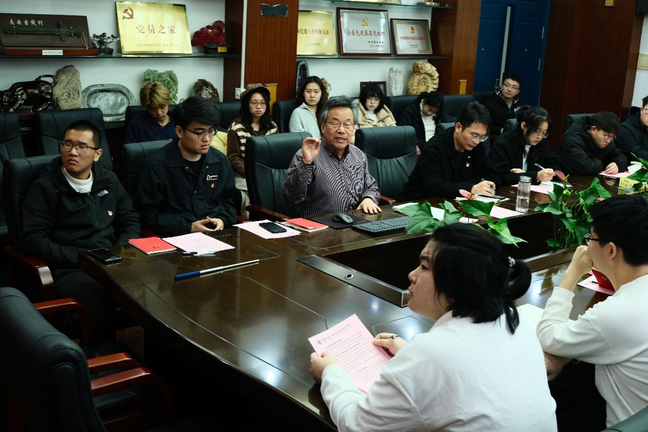 本科生基地班党支部程博航领学中央八项规定及实施细则精神和学校深入贯彻中央八项规定精神学习教育布置会精神。他带领党员们学习了中央八项规定的重要意义和具体内容,呼吁广大学生党员要践行“严在地大”的校风学风,为营造风清气正的校园环境贡献力量。