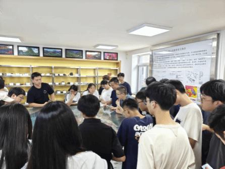 培训间隙,各班同学在带班老师的组织下,分批参观了实习站陈列室,观察了实习路线上的典型标本。陈列室里,泛黄的老照片记录着数代地质人的奋斗足迹,精细的地质图勾勒出周口店的地质脉络。在老师讲解中,同学们不仅了解了实习站的发展历程,更感受到地质人“三光荣,四特别”精神的代代相传。