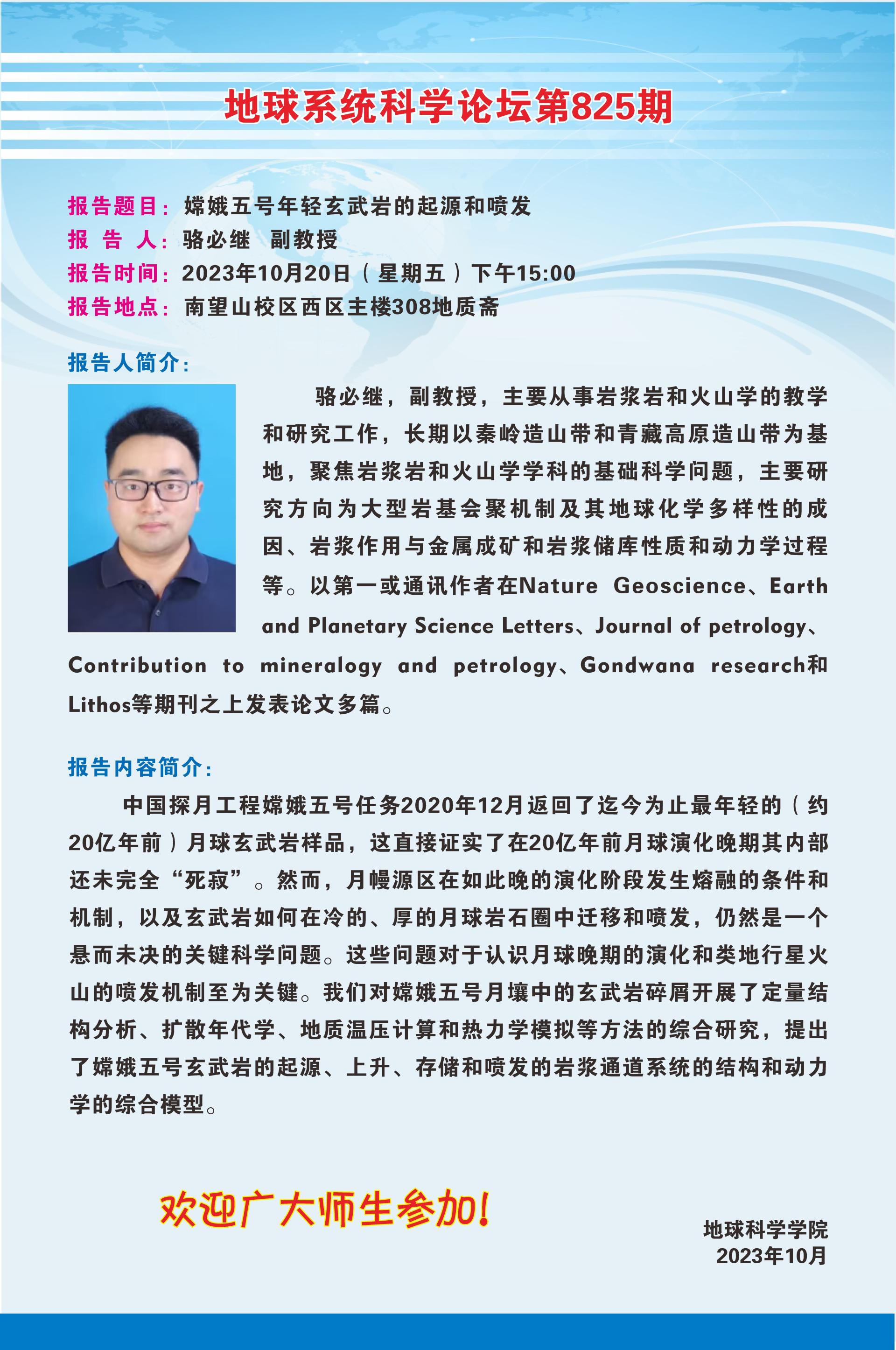 【10月20日】地球系统科学论坛(第825期)-骆必继副教授