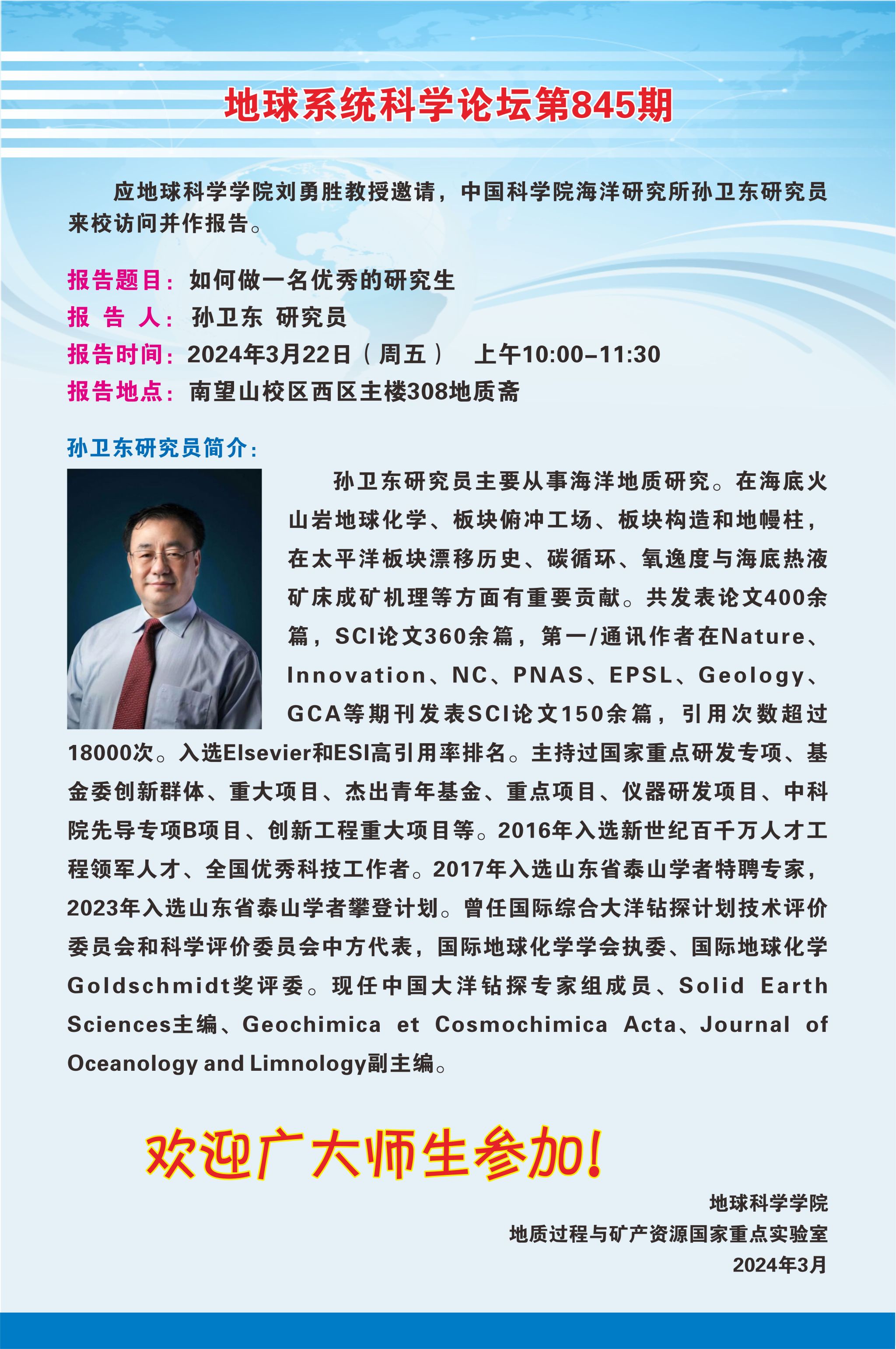 【3月22日】地球系统科学论坛第845期-孙卫东研究员