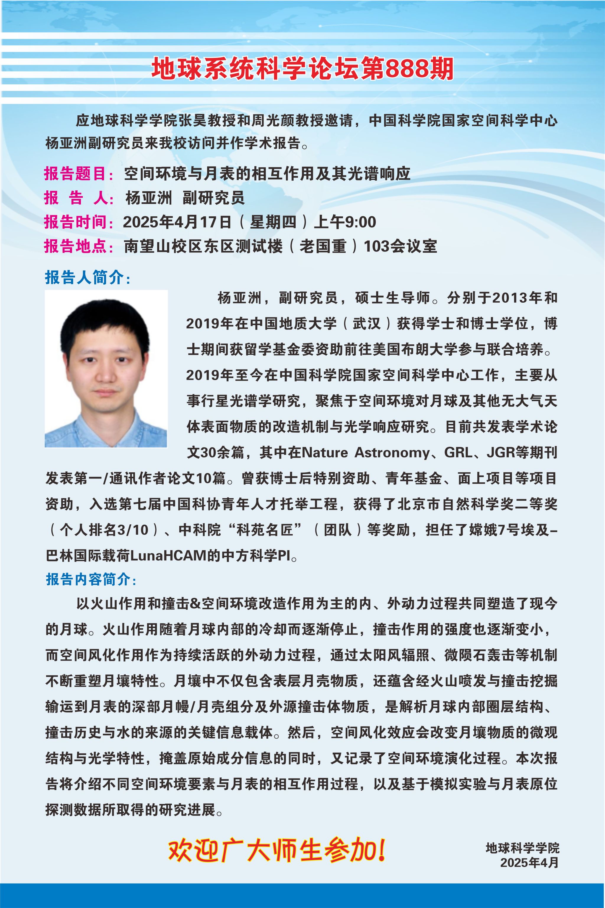 【4月17日】地球系统科学论坛第888期-杨亚洲 副研究员