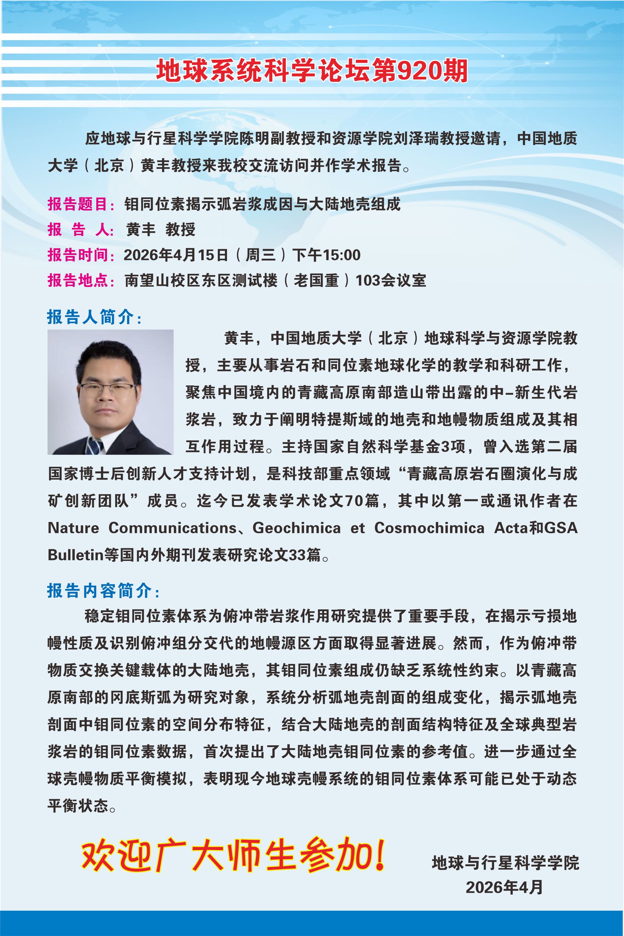 【4月15日】地球系统科学论坛第920期-黄丰