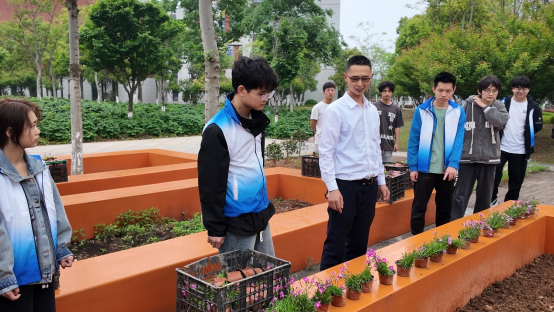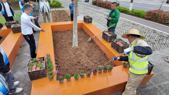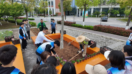 活动接近尾声之际,管理人员和志愿者们也不忘清理现场,未来城校区管理办公室叶传钟老师用水枪轻柔地冲洗着泥土,志愿者们拿着抹布擦拭台面,大家都有着明确分工,将剩余的花苗整齐的摆放进收纳篮里并搬上了车。不一会儿,冲洗去泥土后的花坛,整洁亮丽,绽放的花朵让这片土地洋溢着生机,愿未来这些花朵和树苗都能茁壮成长,成为一道别样的风景。