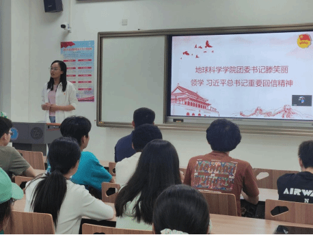 在2025年五四青年节到来之际时,中共中央总书记、国家主席、中央军委主席习近平给新疆克孜勒苏柯尔克孜自治州阿图什市哈拉峻乡谢依特小学戍边支教西部计划志愿者服务队全体队员回信,向全国广大青年致以节日祝贺并提出殷切期望。5月28日晚,地球科学学院01D234团支部联合地理与信息工程学院11D243团支部开展了“学习习总书记给谢依特小学戍边支教西部计划志愿者重要回信精神”主题团日活动。