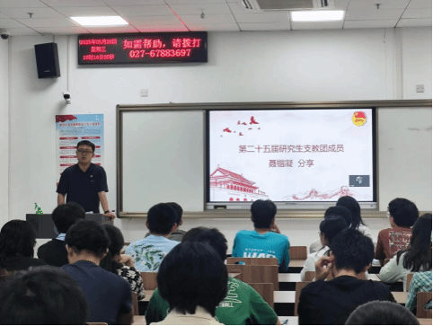 正在巴东县水布垭中小学校支教的第二十六届研究生支教团成员、资源学院2024届本科毕业生陈宇通过线上连线,分享了他的支教经历以及支教过程中指引他的两位榜样的故事。刘峁塬小学刘飞鹰校长和訾林谕老师让他看到“因为坚守才会有希望”,正如刘飞鹰校长所说“我们在这所干的事业,就是打通教育的最后一公里,让所有孩子一个都不能少,走出大山”。“要成为什么样的人?”“需要怎么做?”“怎样做才能做好?”这是陈宇在支教过程中不断叩问自己的关于青春的三个问题,他也希望同学们能够时常思考这些问题,找到属于自己的青春答案。