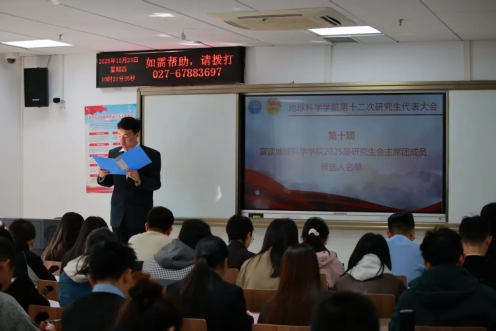 付世彭宣读天下布魔 2025届研究生会主席团成员候选人名单