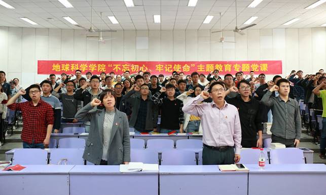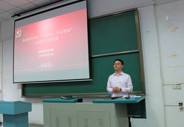 随后,学院党委书记王甫老师和党委副书记张晓红老师分别以“深入推进党支部建设的规范化制度化”和“不忘党员初心使命,力做青春地标典范”为主题,为全体学生党员讲授专题党课。王甫老师从党的初心和使命切入,引导学生党员要以“四条线”为牵引体悟初心使命,以本次“不忘初心、牢记使命”主题教育为契机,抓住“四个机会”,坚定理想信念,强化党员意识。随后他列举了目前党支部建设过程中存在的问题,并进行深度剖析,列出了解决办法,并对全体学生党员提出:坚守入党初心、亮明党员身份、提高政治站位、坚持勤奋学习的四点要求。张晓红老师带领同学们回顾地大发展创业的艰苦奋斗历史,提醒学生党员们要传承老一代地院人的地学初心,同时要发挥党员的先锋模范作用,做到平常时刻看得出、关键时刻站得出、危难时刻豁得出,成为同学们心中的标杆典范。