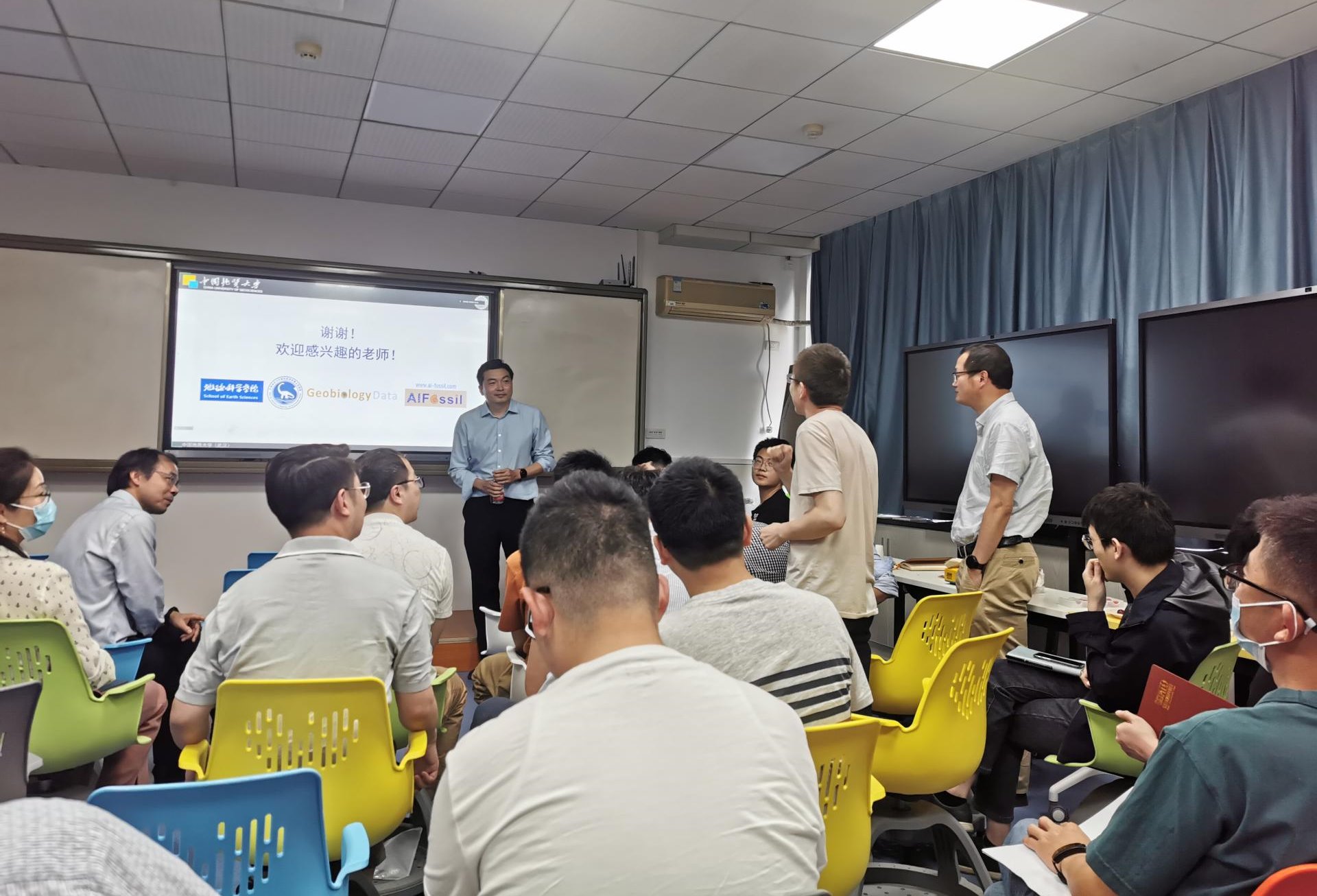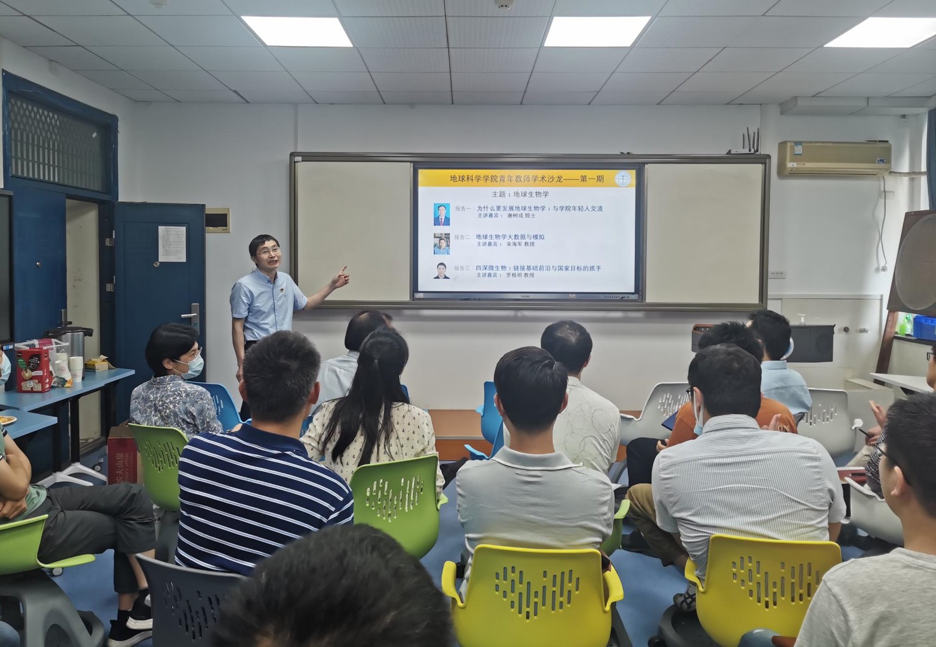 5月5日下午,首期天下布魔 青年教师学术沙龙活动在主楼606智慧教室举行,腾讯会议实时线上直播。学术沙龙旨在分享学院青年教师的学术成果,加强学术交流合作,促进学科交叉融合。现场出席活动的有校党委书记黄晓玫教授、谢树成院士、地学院党委书记周刚及学院青年教师,生环国重、地矿国重青年教师在线参会,本次活动共吸引100余位教师参与。第一期沙龙主题为地球生物学,邀请了谢树成院士、宋海军教授和罗根明教授分享报告,王墩教授主持会议。