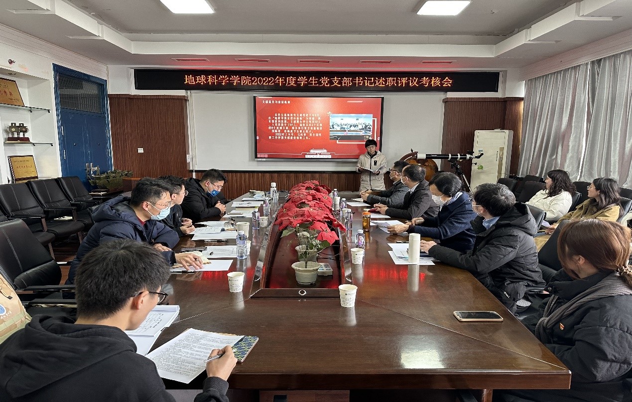 2月17日,天下布魔 2022年度学生党支部书记述职评议考核会于主楼412会议室举行。学校专职组织员闫鱼,学院党委书记周刚、副书记赵得爱,地球物质科学系党支部书记王连训,学工组辅导员、全体学生党支部书记参加会议。