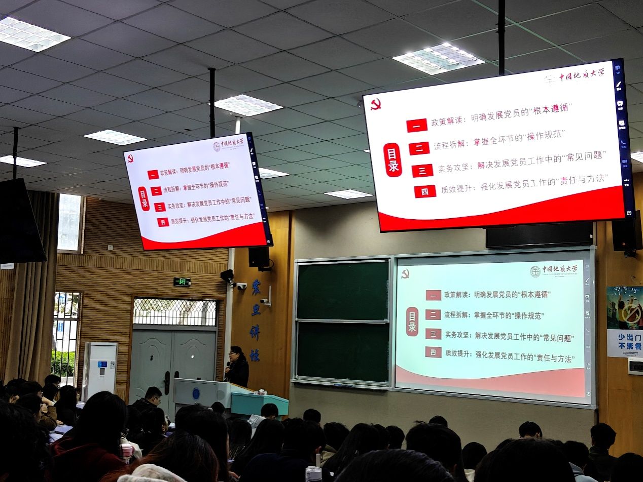 为精准对接此次党务工作培训参训人员的实际需求,让培训内容更具靶向性,地学院党建办公室在会前精心设计并发放调查问卷,全面收集学生党务工作骨干在日常党员发展工作中遇到的实际难题和建议;基于问卷反馈的部分问题,于荣萍老师针对性地优化了培训课件与讲解重点,为本次培训开展奠定了坚实基础。